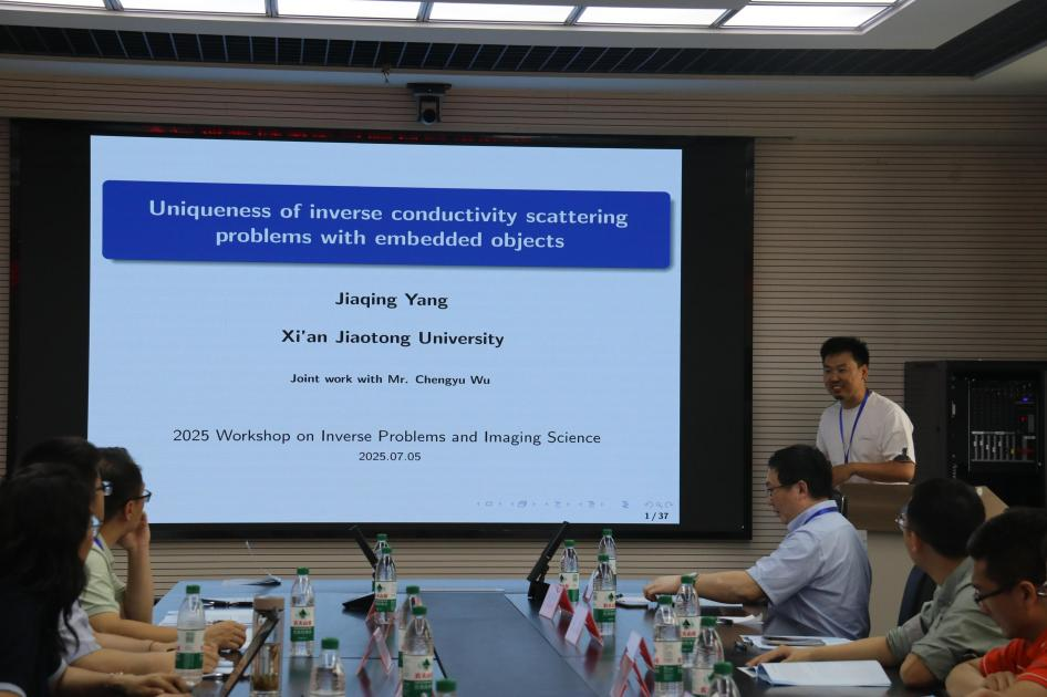 反问题是现代数学物理和计算数学中的一个十分活跃的重要研究领域,已经遍及医学成像、雷达探测、地质勘探、光学、材料和控制等众多重要的科学技术领域。为了促进反问题研究及相关领域的发展,加强学者间学术交流与合作,由pa集团官方网站主办的“2025年反问题与成像科学研讨会”于2025年7月4日至7月6日在pa集团官网入口明向校区顺利举行。来自南开大学、西安交通大学、兰州大学、中国民航大学、四川师范大学、天津师范大学、河南财经政法大学等多所高校的学者们齐聚,深入探讨科学计算、反问题与成像领域的前沿突破。