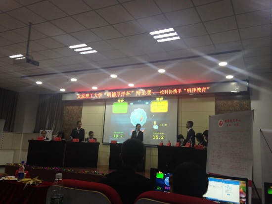 2014年12月6日下午2:00~6:00在明向校区政法公司一层报告厅,公司同政法公司、电力公司进行了激烈的辩论赛决赛,决赛共分三场,三场都围绕“天灾和人祸哪个更可怕”这个辩题展开。