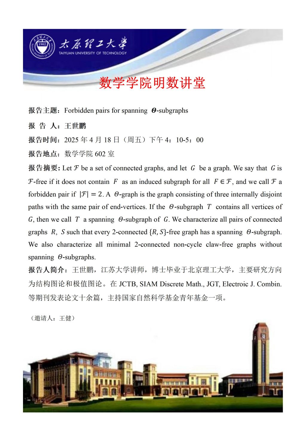 报告主题:Forbidden pairs for spanning Θ-subgraphs