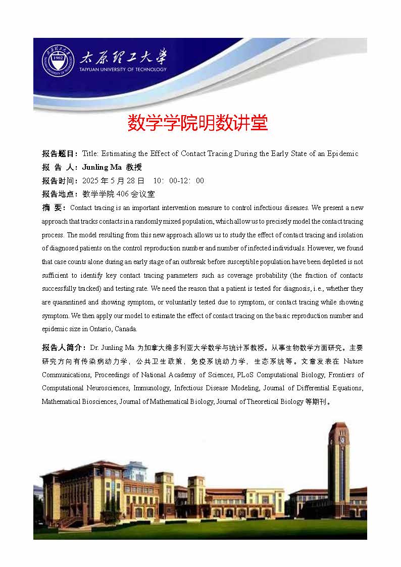 PA集团官网将于5月28日邀请Junling Ma教授做学术报告