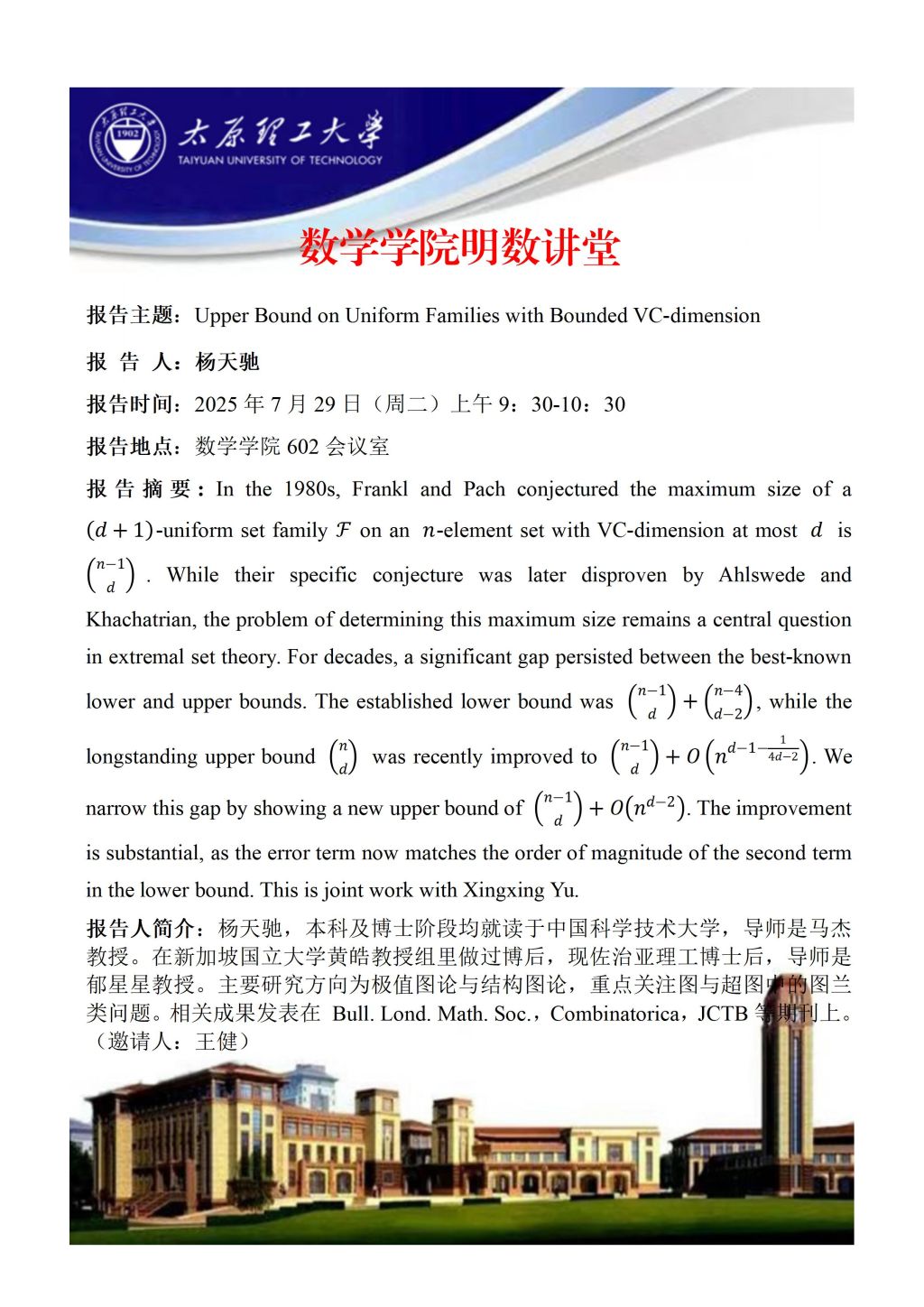 PA集团官网将于7月29日邀请杨天驰做学术报告