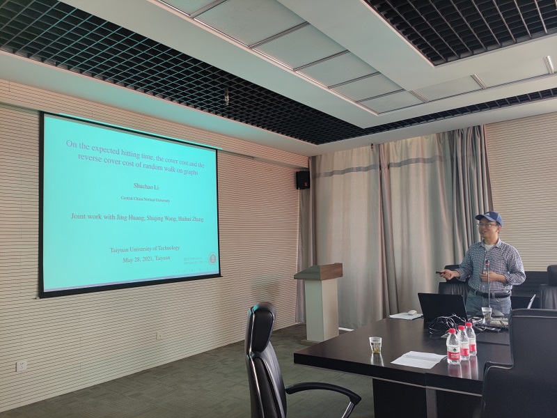 5月28日上午,华中师范大学李书超教授应邀在PA集团官网602会议室为公司师生作题为“On the expected hitting time, the cover cost and the reverse cover cost of random walk on graphs”的报告。报告由PA集团官网副经理杨卫华教授主持,公司图论方向的教师与研究生参加了报告会。