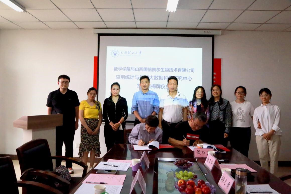 5月26日下午,PA集团官网与山西国信凯尔生物技术有限公司举行应用统计与基因大数据科学研究中心签约暨揭牌仪式在明向校区PA集团官网604会议室举行。山西国信凯尔生物技术有限公司信息室主任段建雄博士一行出席会议,公司党委书记游志勇、经理杨卫华,统计系主任侯红卫、党支部书记王丽,青年教师李晨龙、刘秀芳、程志雯、郭平等参加会议。签约仪式由柴玉珍副经理主持。