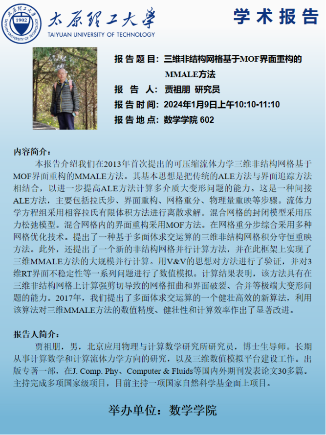 报告题目:三维非结构网格基于MOF界面重构的MMALE方法