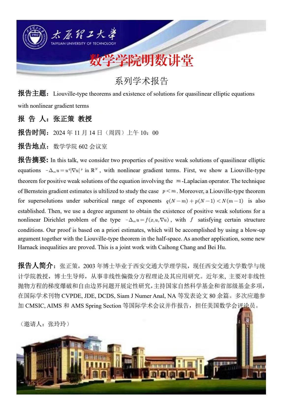 报 告 题 目:Liouville-type theorems and existence of solutions for quasilinear elliptic equations with nonlinear gradient terms