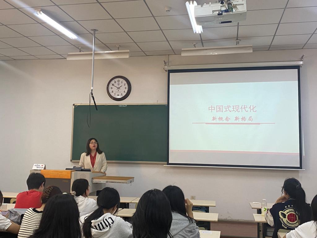 支部书记冯妍同志以《中国式现代化“新概念、新格局”》为题,结合自身学习体会和工作实际,从中国现代化的历史逻辑、中国式现代化的中国特色和本质要求以及中国式现代化新征程与青年使命担当三个方面讲授专题党课,阐述了中国式现代化的重要性。