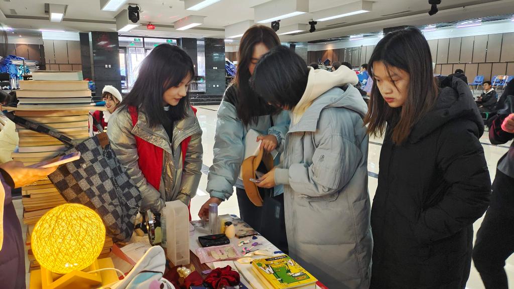 义卖当天,志愿者们早早便开始布置场地,摆好即将出售的物品。本次义卖的物品由同学们爱心捐赠,包括书本、文具、饰品等。在摊位上,志愿者们的吆喝声此起彼伏,还有部分志愿者积极宣传、耐心推荐,吸引了许多同学驻足,大家纷纷围上来,细心挑选,义买场面十分热闹。每一样物品,都包含着满满的爱心,义卖活动让这个冬天变得格外温暖。参与的同学们纷纷表示此次活动很有意义,既买到了心仪的物品,又献出了自己的一份爱心。