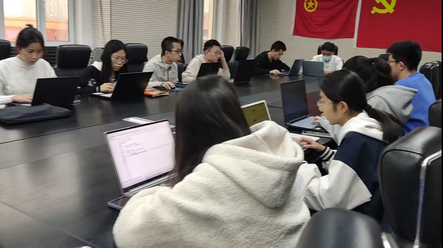 信计2101团支部开展了“代码传情,献礼党的二十大”团日活动。活动中,同学们利用所学的专业知识进行编程,在手指与键盘激烈的碰撞中,一行又一行神秘而精妙的代码跃然于屏幕之上。有的同学在电脑上运行出一个个爱心,有的运行出五星红旗以及自己的祝福语,有的运行出歌曲《光荣啊!中国共青团》,大家用代码的方式在电脑上诉说着对党和祖国的祝福和热爱。