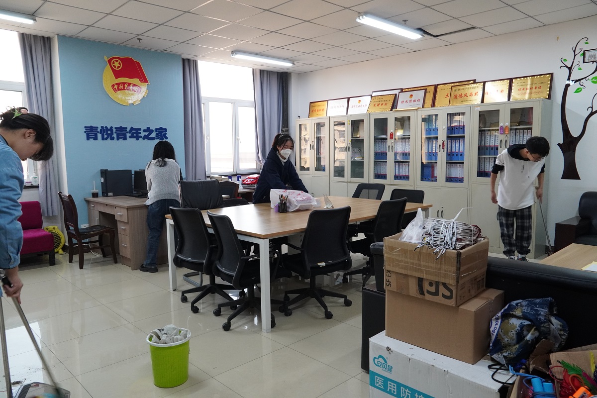 活动中,同学们分别拿着扫帚、拖把、簸箕、垃圾桶等卫生工具,到办公室每个角落进行清洁,清扫了地面死角的灰尘,整理了书柜文件和桌面办公用品,擦拭了桌椅沙发等,同学们团结协作,分工具体,充分发扬不怕苦、不怕累的精神,用实际行动践行雷锋精神。