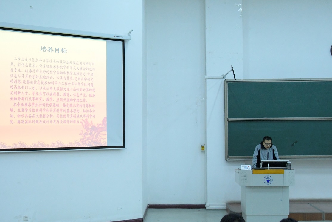 高犇分别从专业历史、专业优势、专业定位、专业实用性及就业情况等方面对数学与应用数学专业进行介绍,并向同学们提出学习建议,希望同学们立志学习,踏踏实实学习,掌握过硬本领。