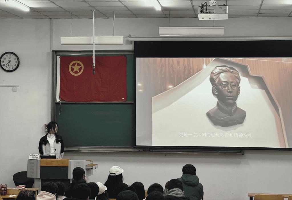 由“尚德班”优秀学员组成的宣讲团利用赴高君宇故居参观时积累的素材,以主题团日活动的形式进行宣讲。宣讲团成员梁茜琪以“弘扬革命精神,牢记使命担当”为主题,从深刻内涵、不朽价值、光辉典范和延续传承四个方面展开宣讲,带领同学们感受高君宇“如闪电之耀亮,如彗星之迅忽”的一生,坚定了同学们延续革命精神的信念;